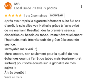 Après les séances, de nombreuses personnes décrivent une sensation d’indifférence face à la cigarette, parfois même de dégoût, mais sans effort conscient. Leur esprit reste calme, leur corps détendu.